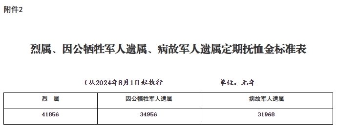 2.烈属、因公牺牲军人遗属、病故军人遗属定期抚恤金标准表